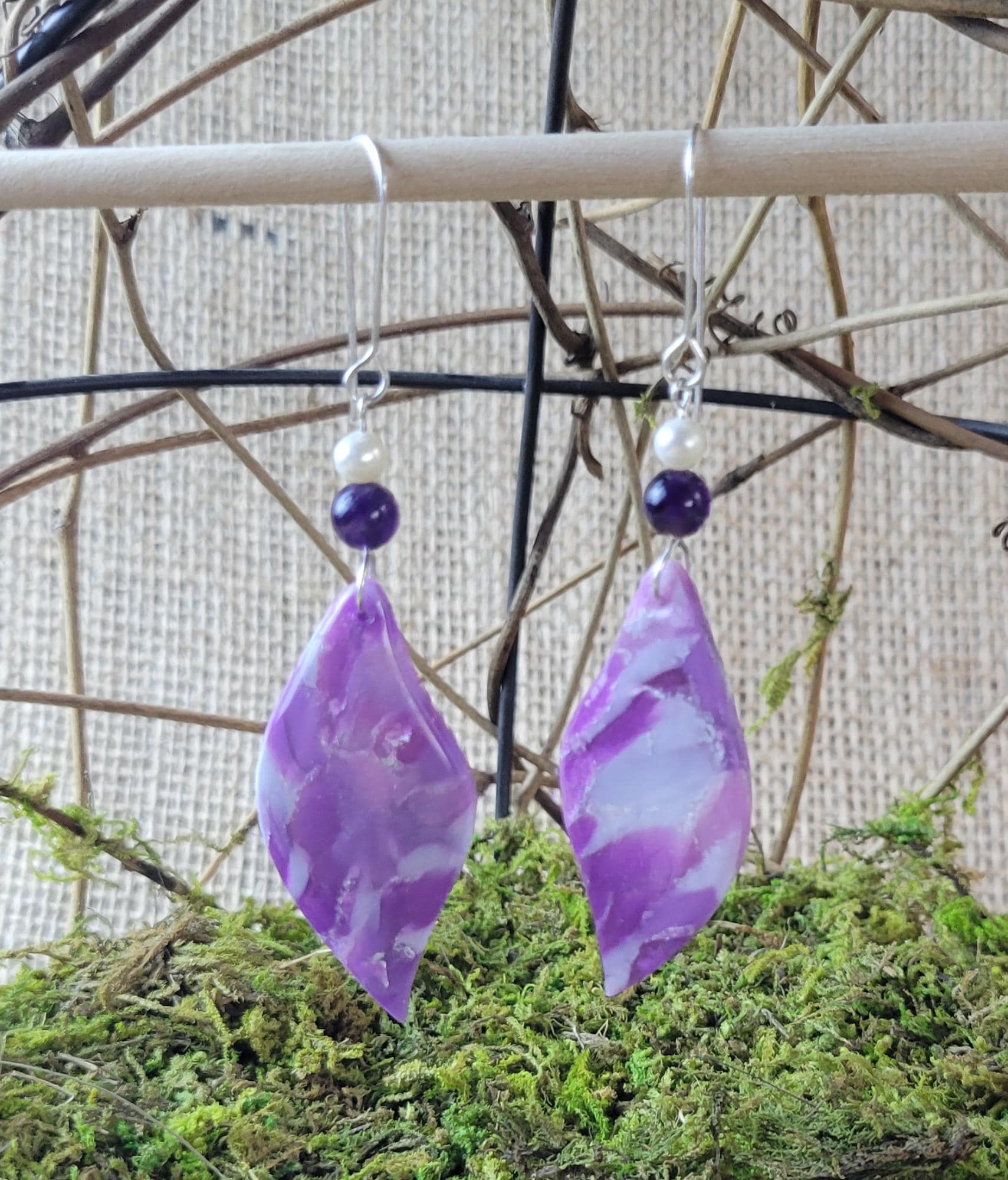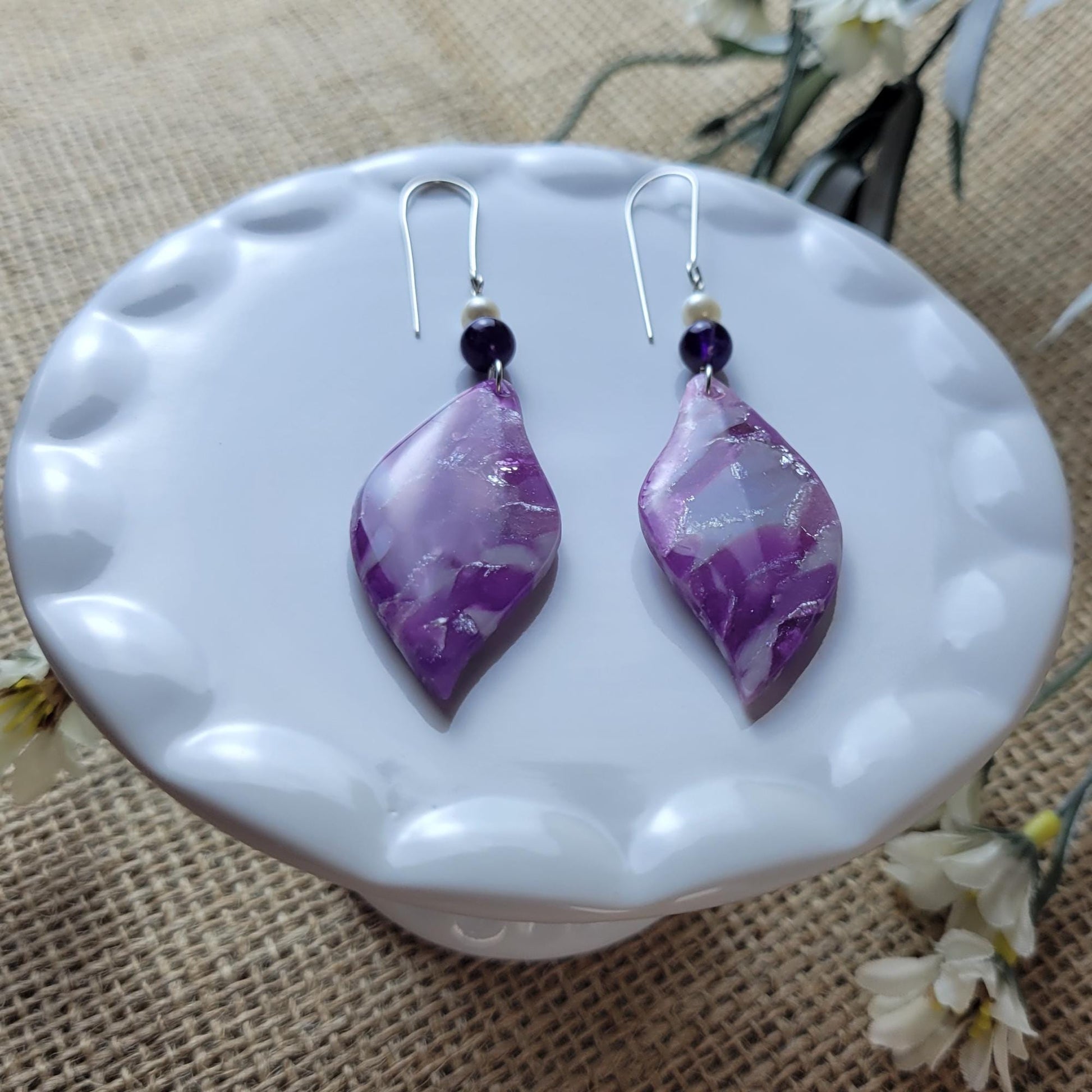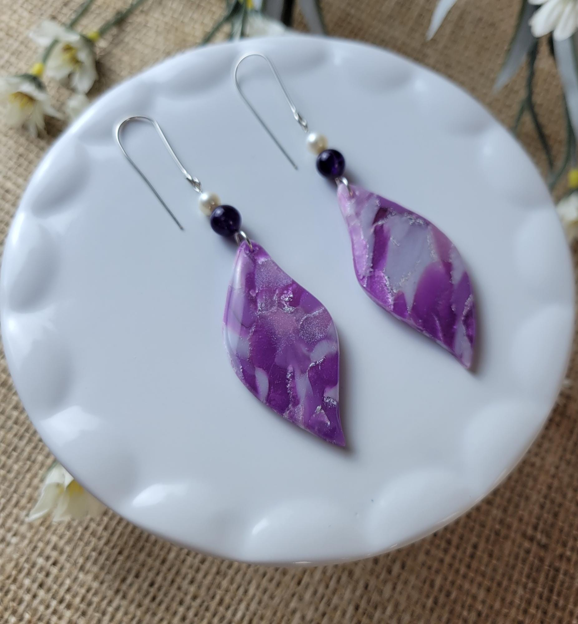 Amethyst Clay Earrings – Crystal-Inspired Jewelry for Intuition & Calm, Lightweight Handmade Dangles, Spiritual Gift for Her, Boho Style