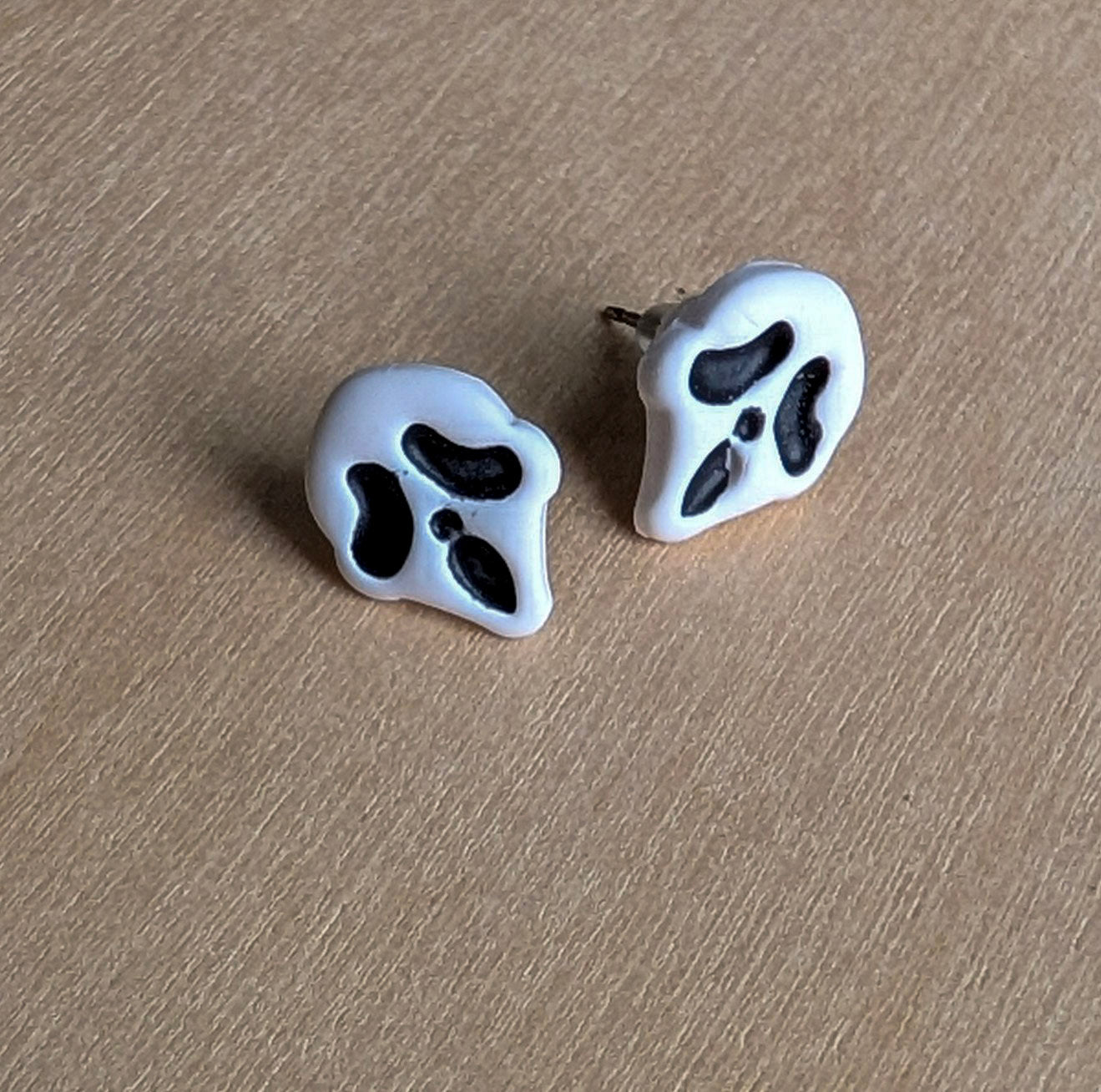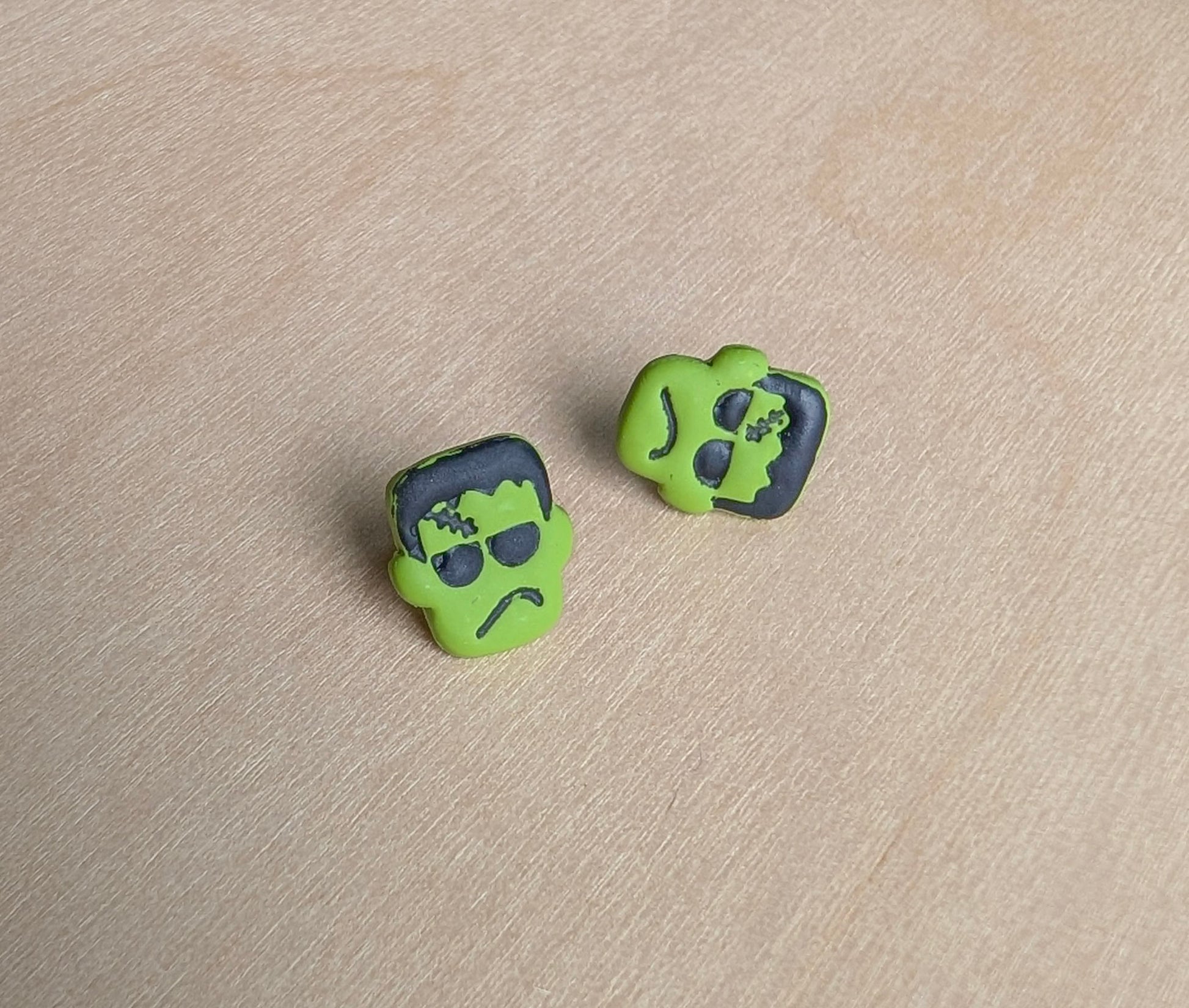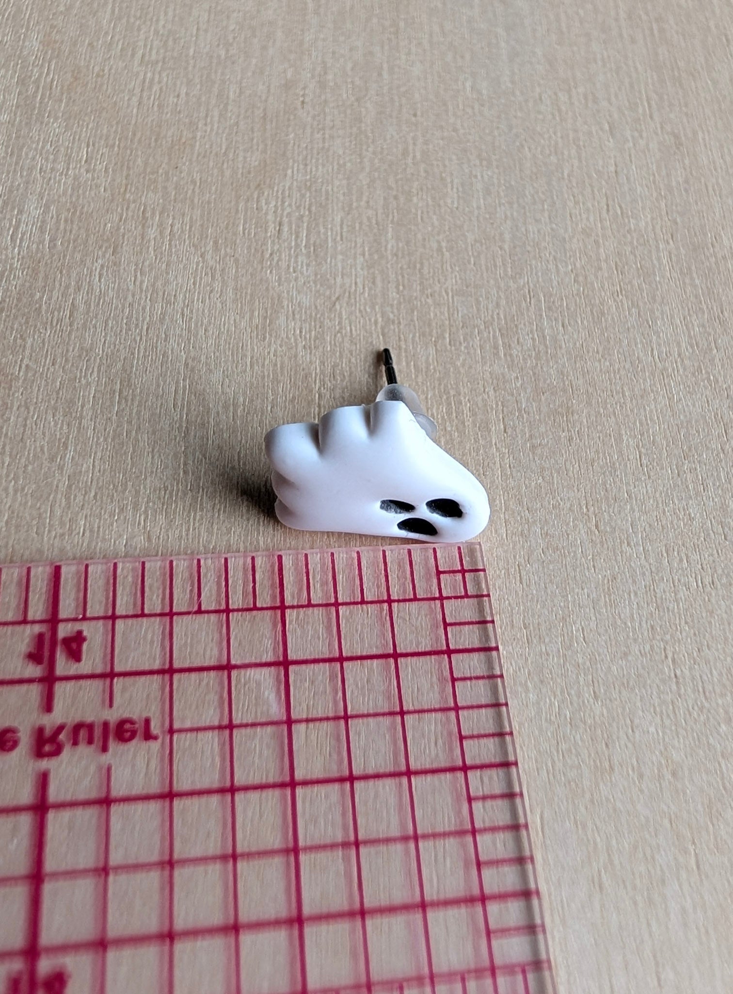 Each stud is handmade from polymer clay, finished in a matte texture, and secured to hypoallergenic titanium posts for sensitive ears. Measuring just 0.5 inches, these tiny statement pieces are lightweight, mix-and-match friendly, and perfect for kids, teens, and adults who love Halloween’s playful side.