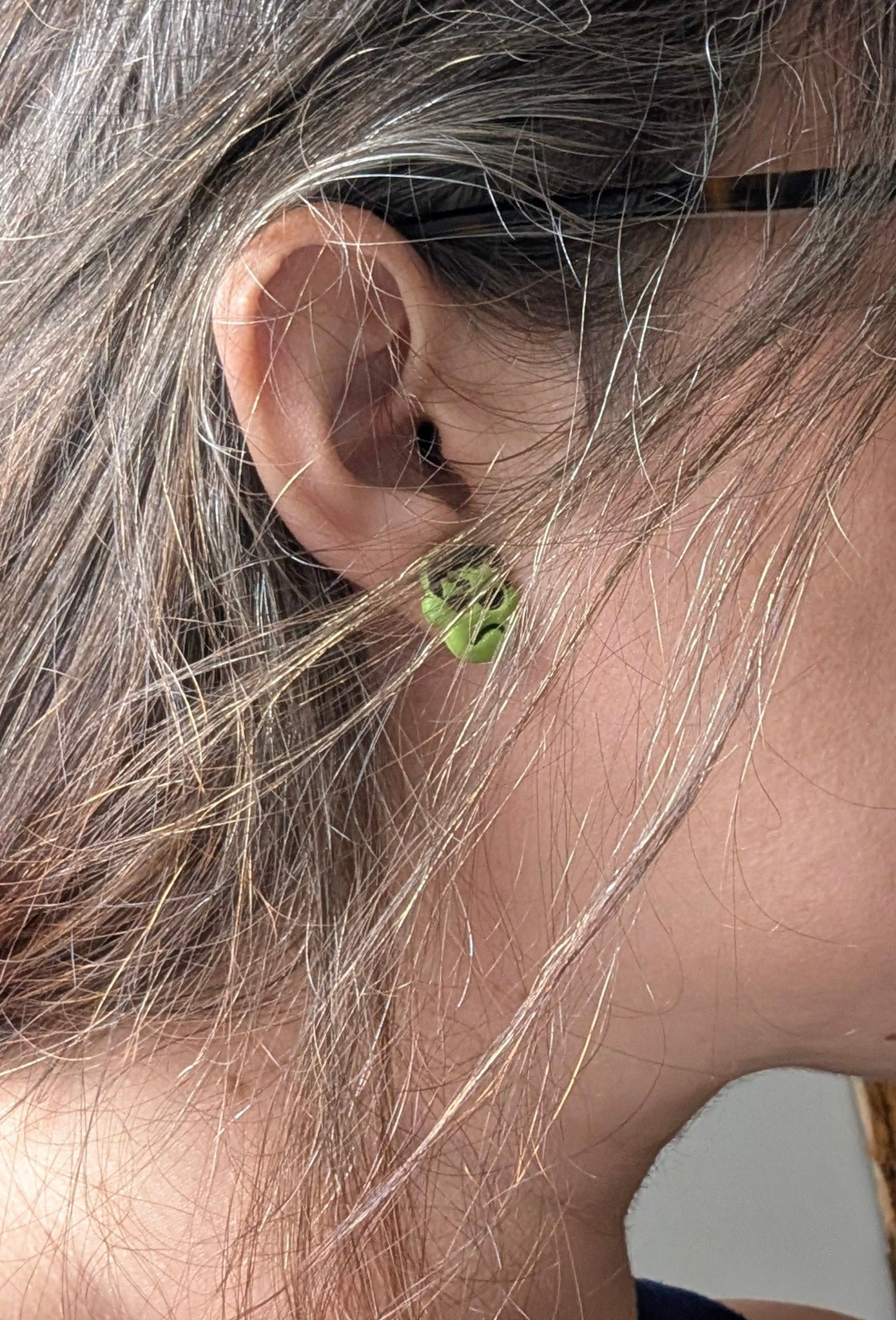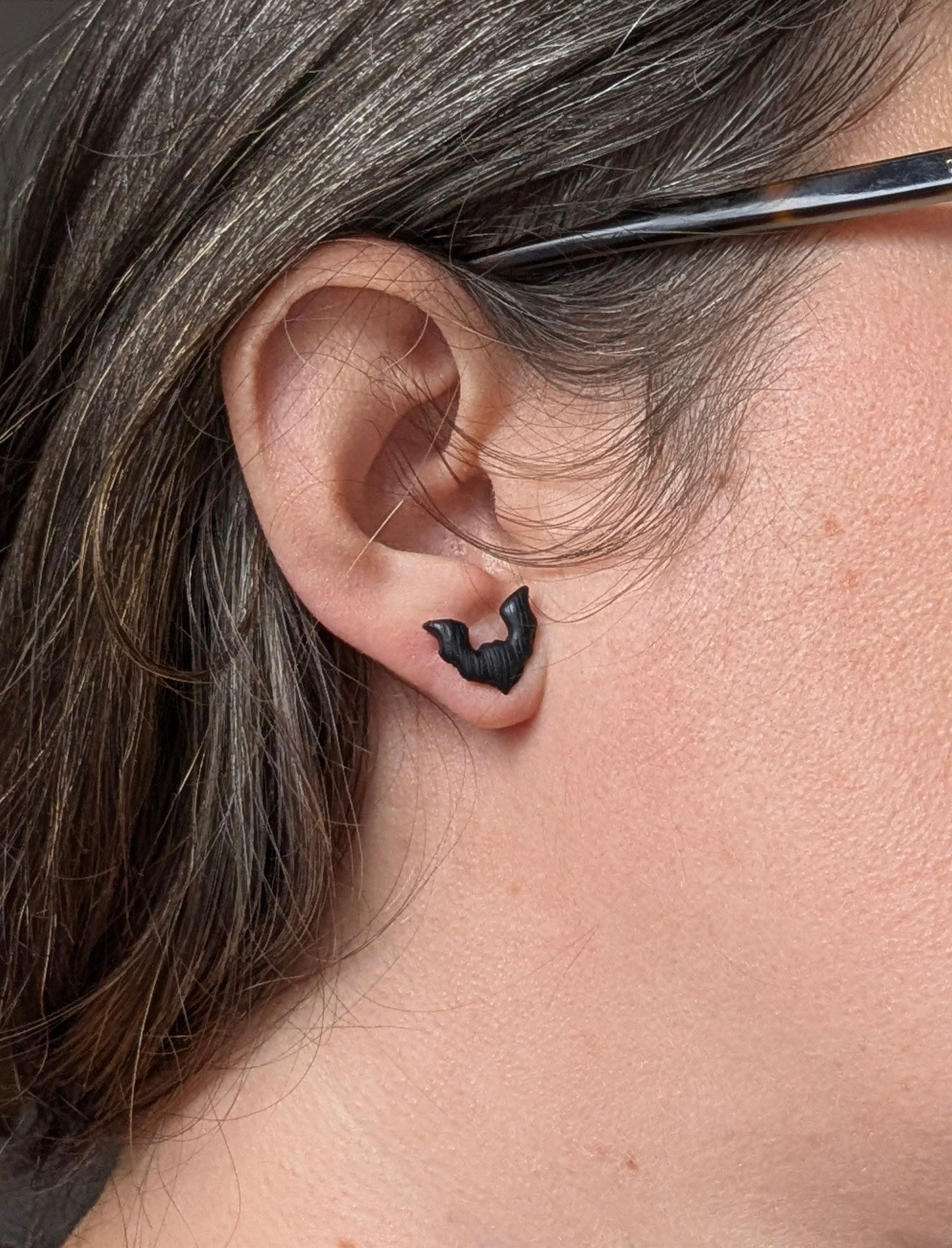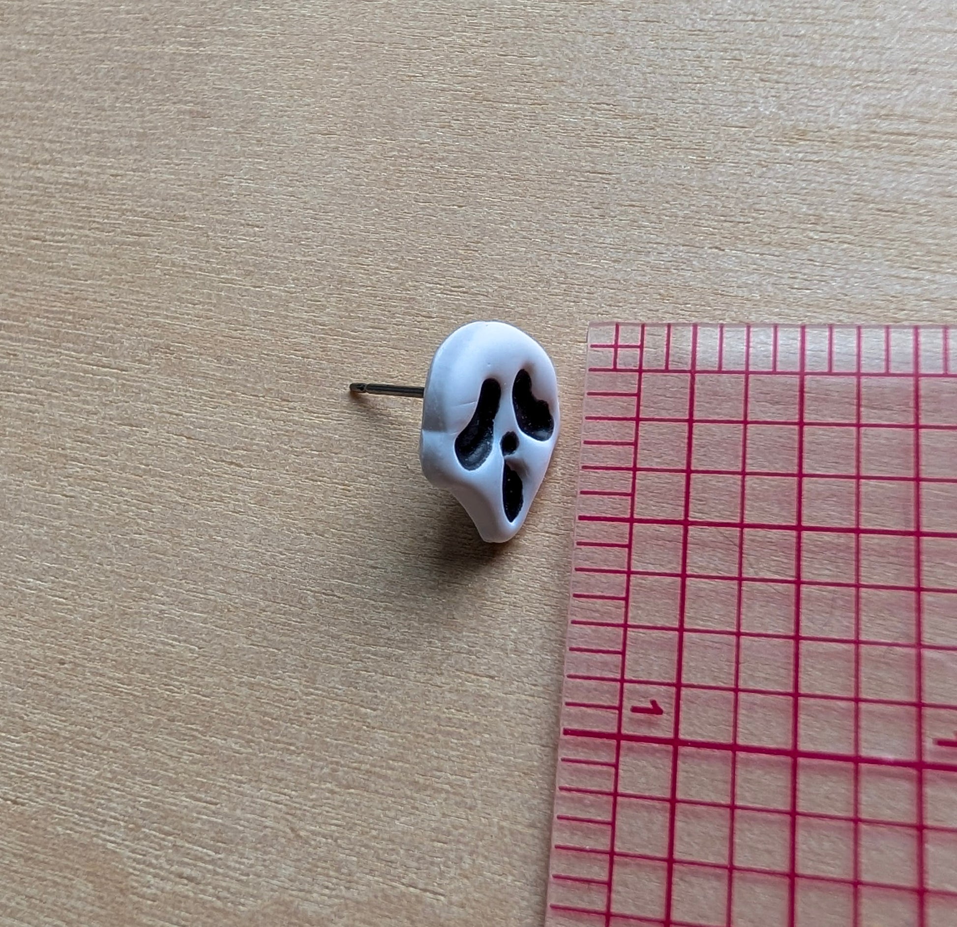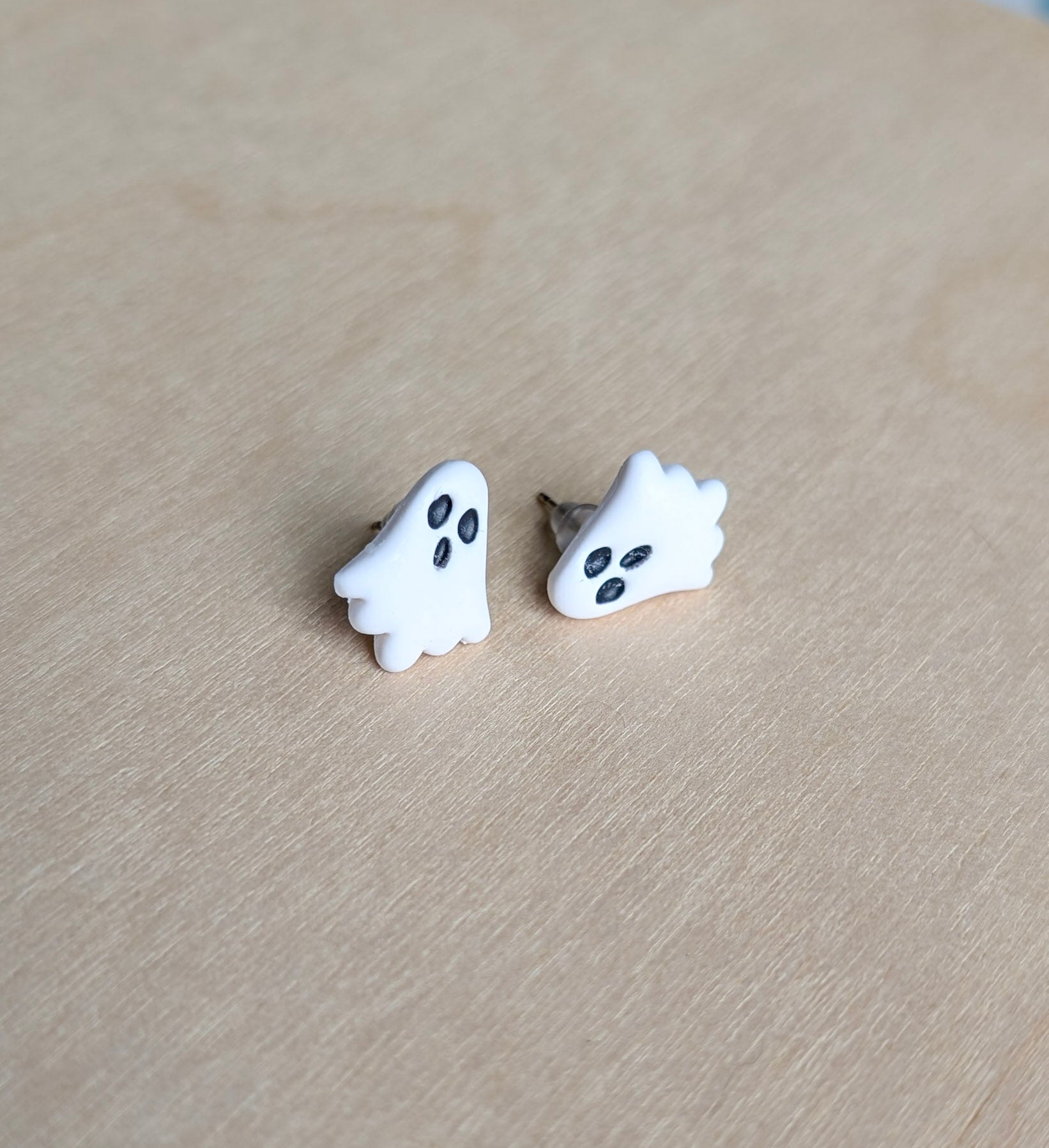 Each stud is handmade from polymer clay, finished in a matte texture, and secured to hypoallergenic titanium posts for sensitive ears. Measuring just 0.5 inches, these tiny statement pieces are lightweight, mix-and-match friendly, and perfect for kids, teens, and adults who love Halloween’s playful side.