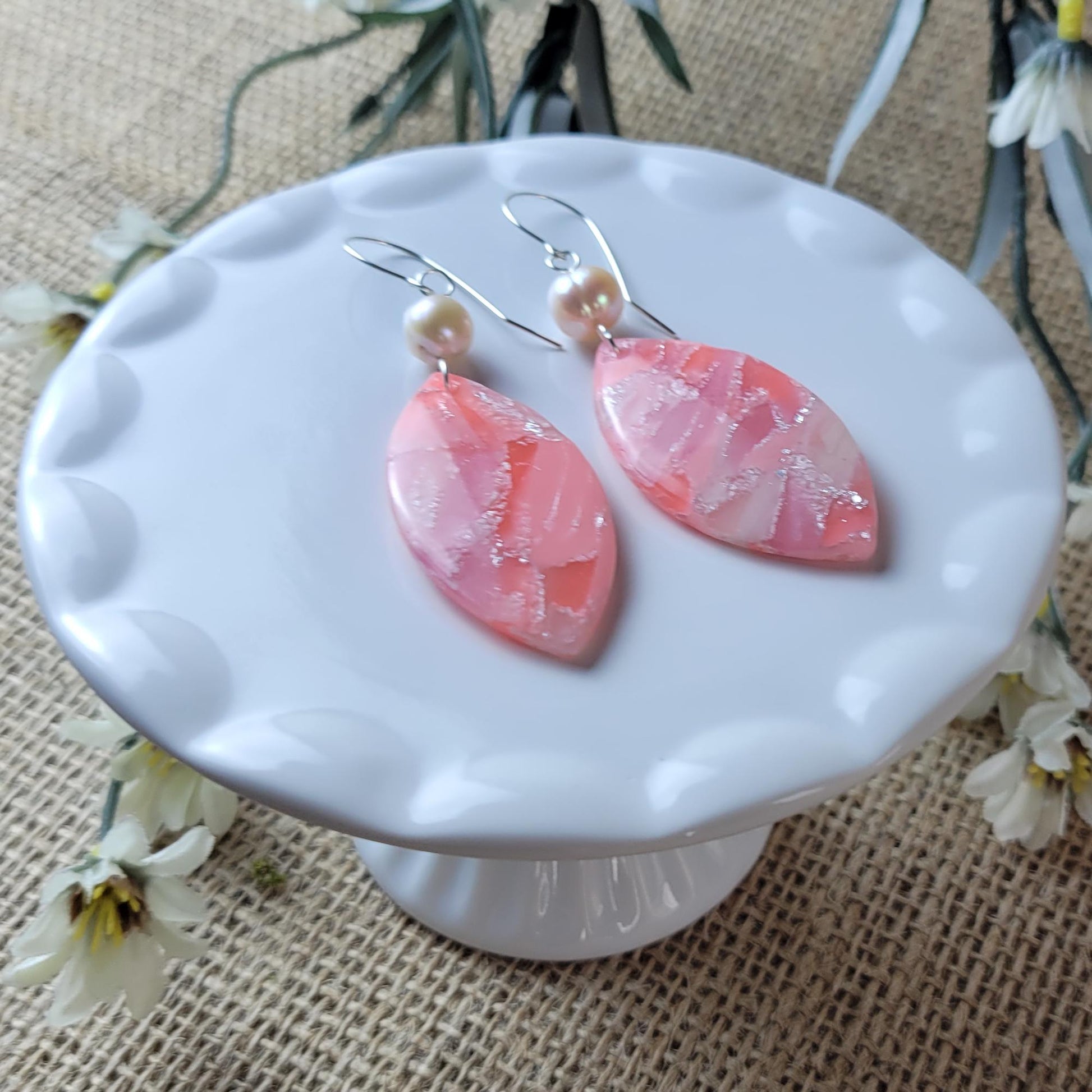 Rose Quartz Clay Earrings – Crystal-Inspired Jewelry for Love & Healing, Lightweight Dangle, Handmade Gift for Her, Boho Spiritual Style