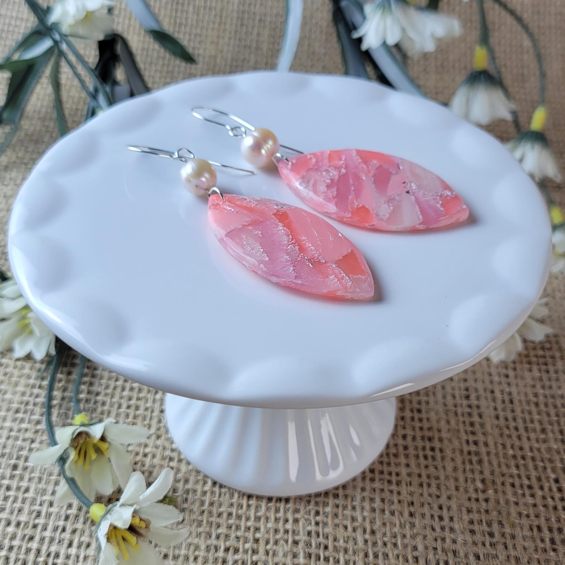 Invite in the energy of love and compassion with these rose quartz-inspired clay earrings. Carefully handcrafted with soft pink tones and silver foil accents, each pair channels the nurturing essence of rose quartz—the crystal of unconditional love. These earrings may be clay, but their energy is anything but artificial. Lightweight and easy to wear, they're sealed in a protective resin finish and paired with hypoallergenic sterling silver ear wires—perfect for sensitive ears and sacred moments alike. Let them be your everyday talisman or a thoughtful gift for someone you care about deeply. Dimensions, length 3 inches, width 1 inch.
