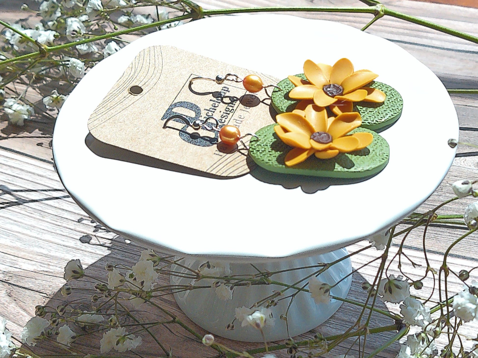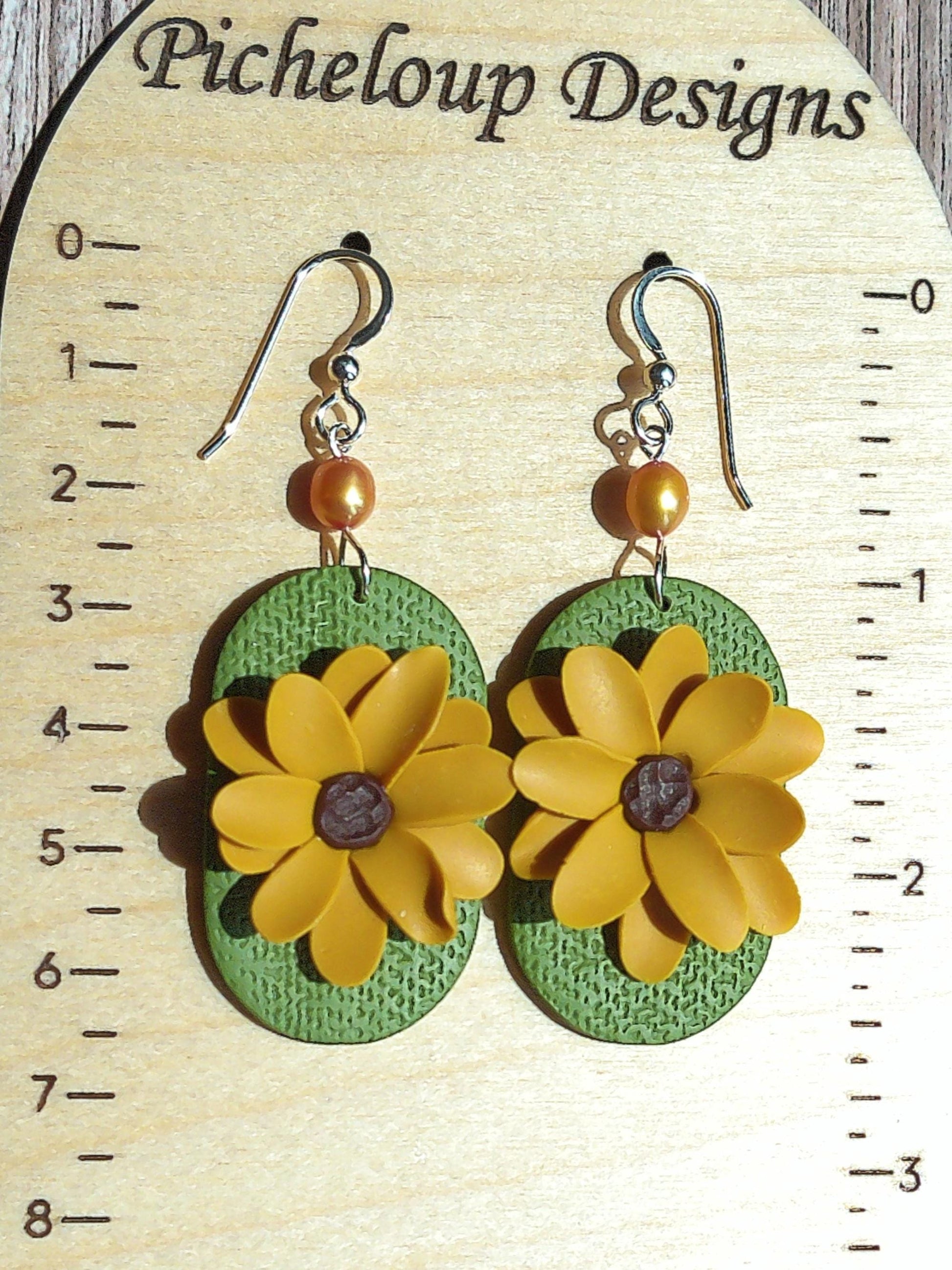 • Materials: Polymer clay, yellow freshwater pearl, sterling silver fishhooks