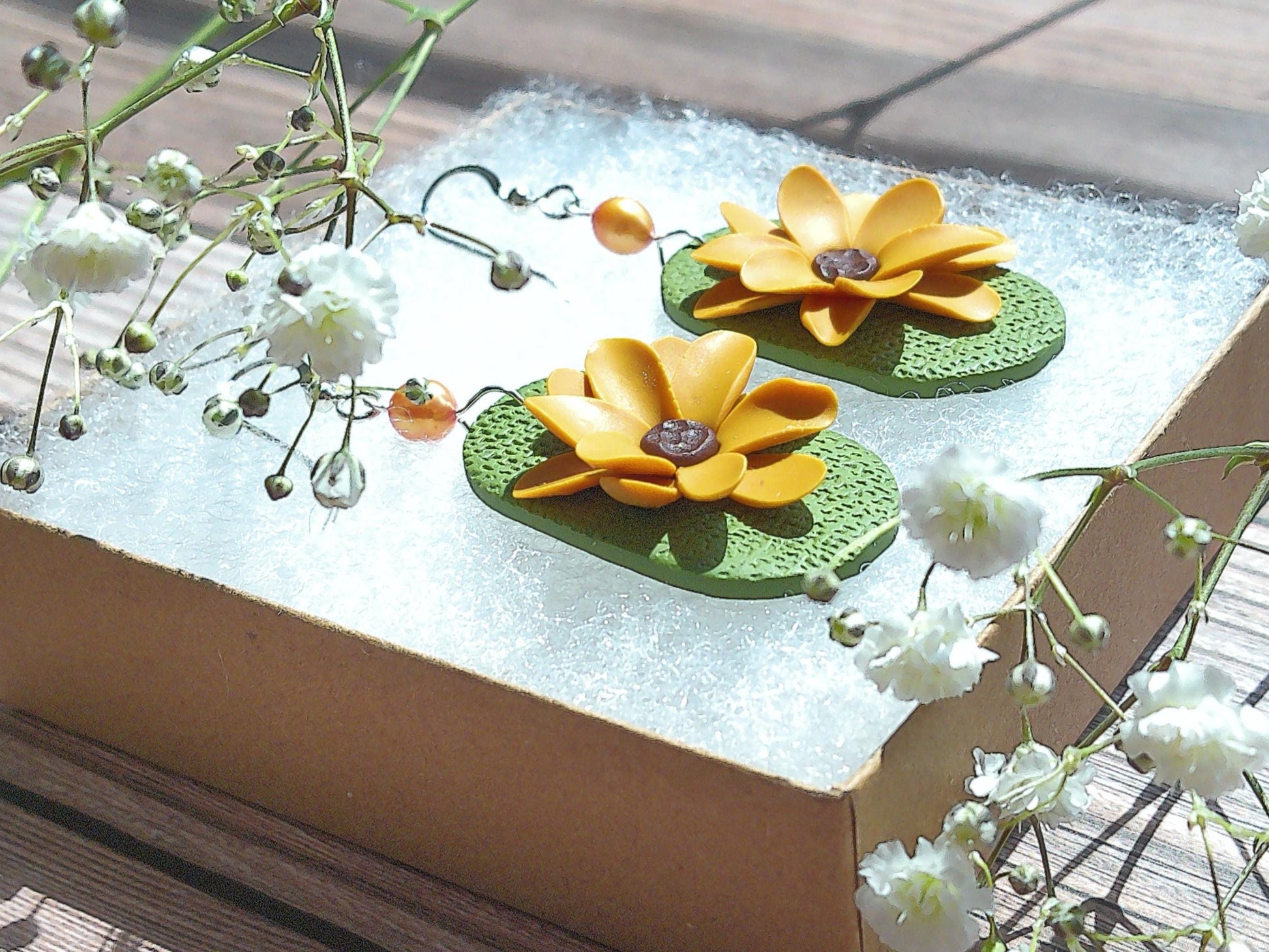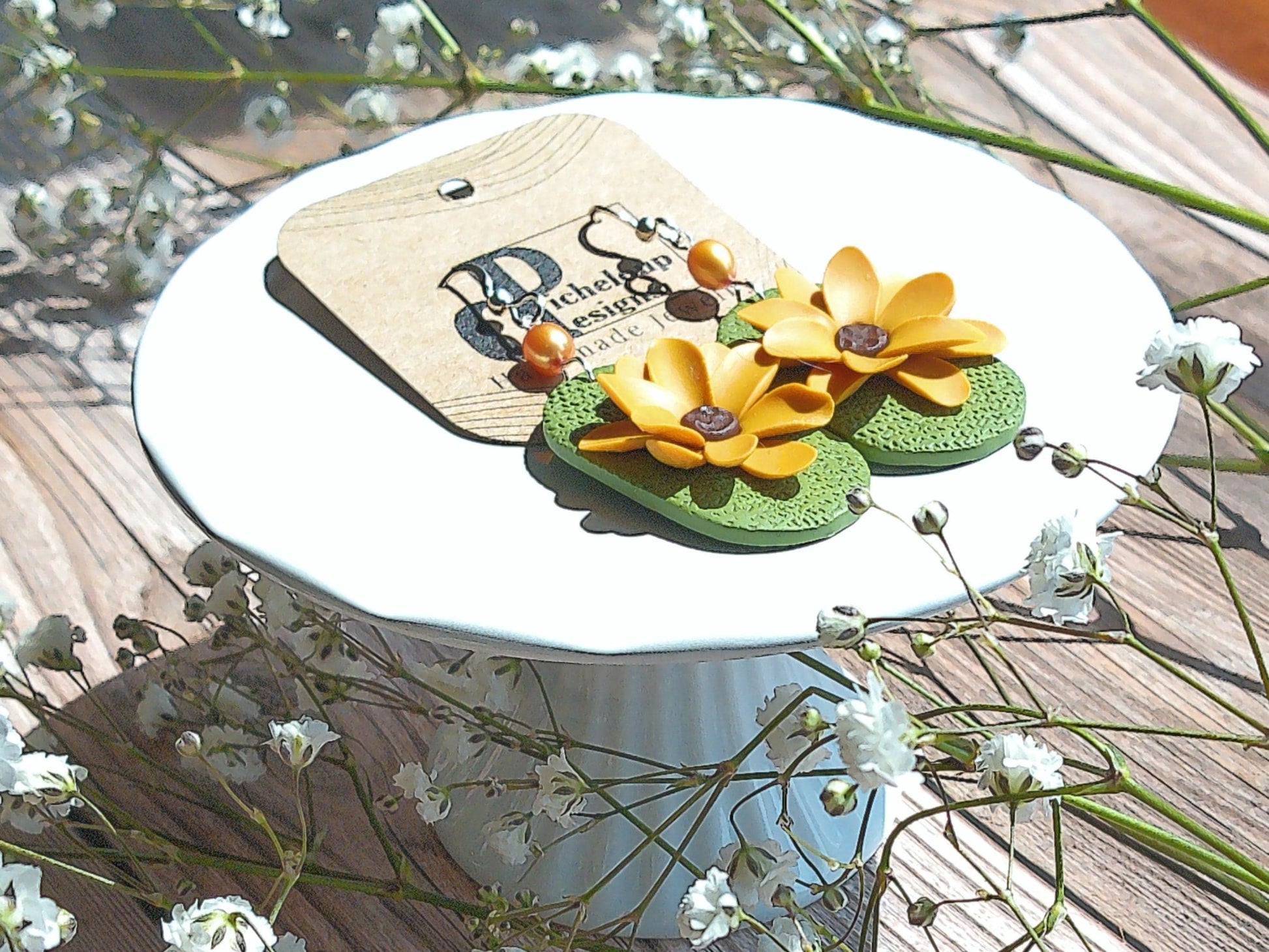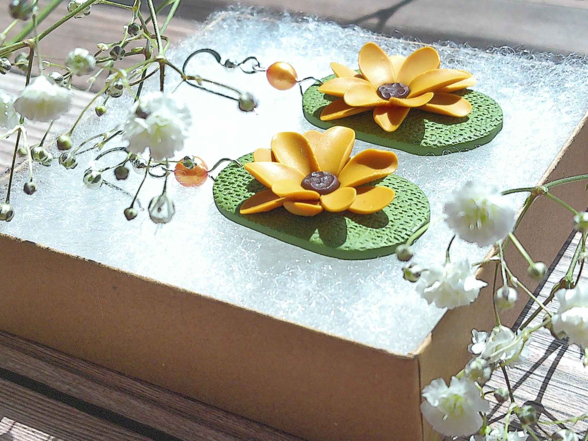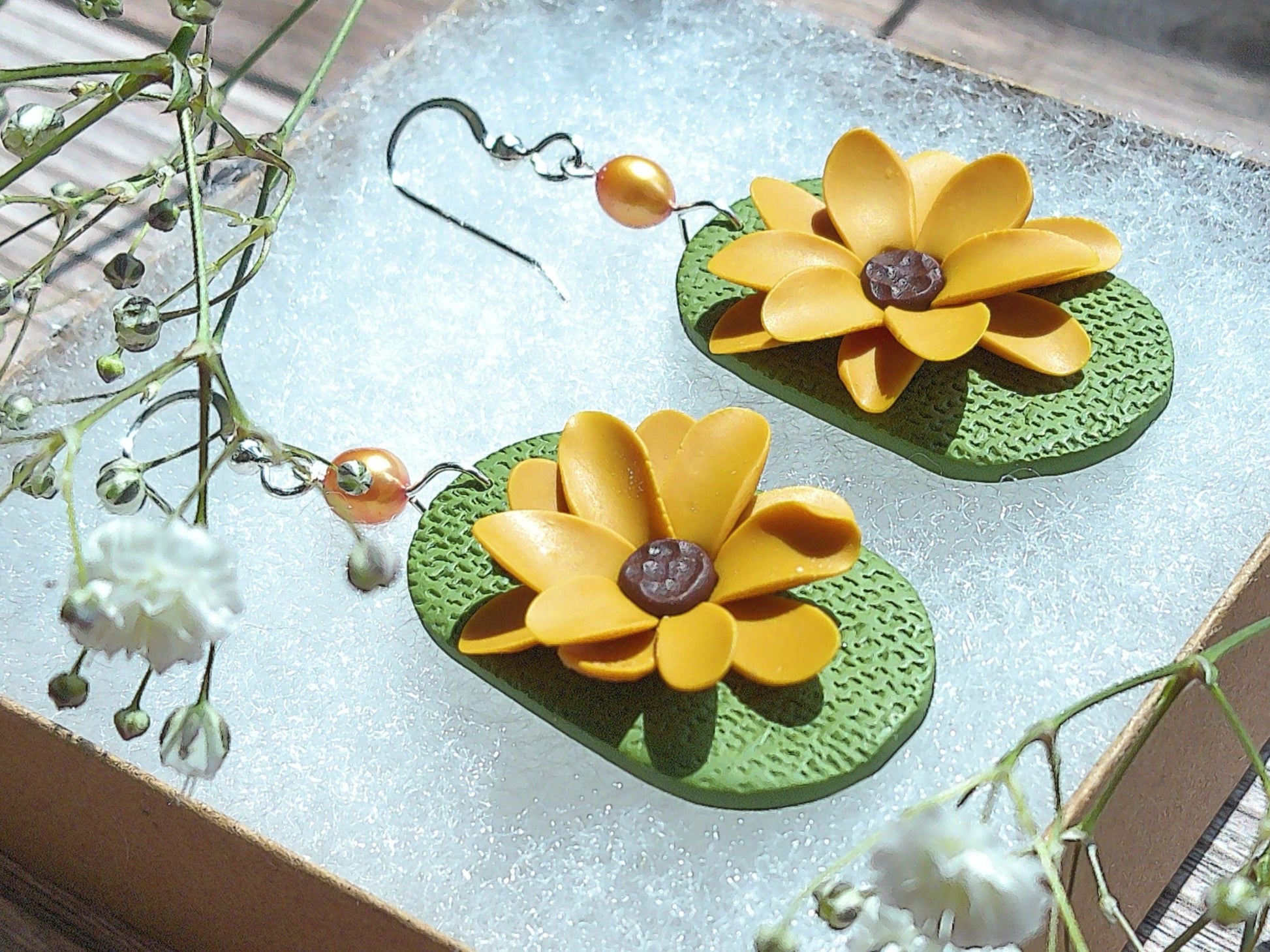 • Style: Bohemian, playful, sunflower statement • Backing: Sterling silver fishhook (hypoallergenic) Each sunflower is lovingly hand-sculpted, so no two are exactly the same — just like nature intended.